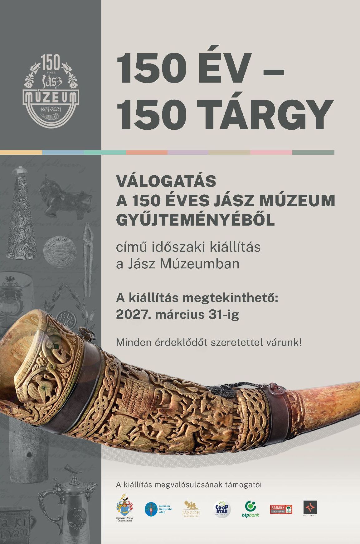 150 év - 150 tárgy. Válogatás a 150 éves Jász Múzeum gyűjteményéből.
